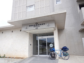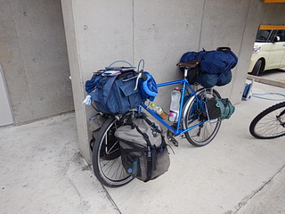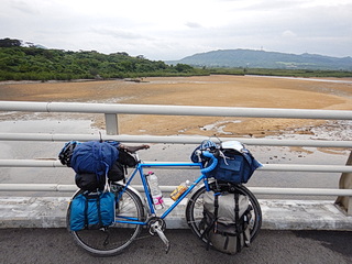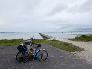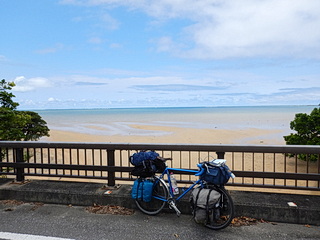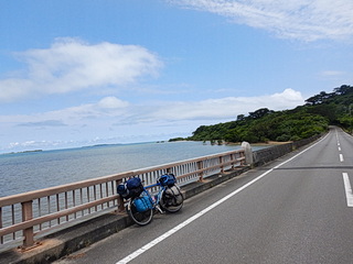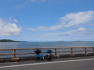ホテルの名前が"BREAKFAST"というだけのことはあって、朝食のバイキングが凄い。刺身をのせた海鮮丼とか沖縄料理まで何でもある。朝食に満足したら出発に向けて準備する。ランドナーにキャリアを取り付ける。今年の旅はキャンプの日数は少ないとは言え八重山諸島でのキャンプツーリングは楽しみである。昨日までは空荷で楽々な走りだったが、今日からはフル装備になる。荷物を積み込んで形が出来ると、改めて"旅"を実感する。宮古島は空荷でホテル住まいでテレワークも兼ねてて、どこかツーリング100%ではなかったが、スイッチが入ったような感覚がある。とは言ってもフル装備で走る旅は50回を超えてるので初日だからと言って重さに戸惑うことはない。