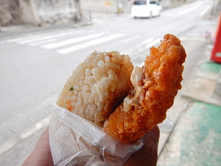 買い物を済ませたら本気での走りになる。3月に300km走ってて宮古島でも320kmを走っているので体の調子は良い。昨日の夜に無心に走り抜いた道を逆走していく。向かい風にやや苦しめられながらも順調に進めていく。白保の集落あたりで海を見つつ昼飯にしようと思って石垣島の東側を北上していたら、道路の右側に知念商会を見つけた。石垣の市街地付近だと思ってたので後日にでもと思ったが、ここで立ち寄っていく。袋の中でご飯とふりかけにささみのフライを握りこんで作るオニササが名物になっている。本店以外にも支店があるとは思いもしなかったので、サプライズに喜びを隠せない。オニササを作っていると店の方がパイナップルを切って出してくれる。試食と言っても1本まるごと切ってお客様に振る舞っている。これが沖縄で言われるカメーカメー攻撃ということで愛を感じる。店の表でオニササにかぶりつく。ご飯とささみフライとソースという素朴な組み合わせが癖になる。 オニササをすっかり満喫したら、再び北に向けて走り出す。天気はすっきり冴えないので白保の海は今日はスルーしていく。リゾートホテルを横目に見ながら徐々に辺鄙になっていく石垣島の幹線国道を走る。白保を抜けると石垣空港に向かうのみとなるが、この空港の近くはレンタカーの拠点ぐらいしか無い。下調べの時も空港から市街地までナイトランするのは面倒だと思ったが、現地に来ても空港近辺には宿はない。空港に近いところにニーズが無いのだろうか。空港あたりから道のアップダウンが大きくなってくる。体は出来ていないが走りそのものは悪くは無い。元々、目的地の伊野田が遠くはないからか15時ぐらいに完走のめどが付いてきた。 |