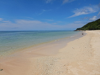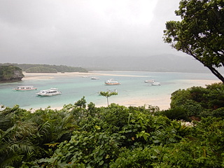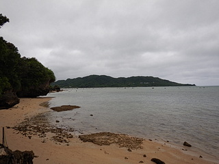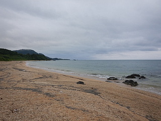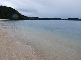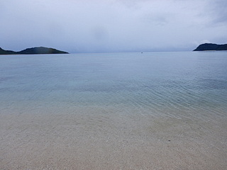 キャンプ場にチェックインする前にキャンプ場のすぐそばの伊野田ビーチを見ていく。天気はイマイチなので海の美しさはイマイチになっているが、それでも透明度と晴れた時を想像させる色がある。天気予報だとずっと雨なので伊野田ビーチの美しさを満喫出来る日が来るのか不安だが、奇跡を祈るしか無い。 |