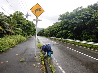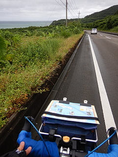サビチ洞から伊原間まで戻り、国道では無く島の西側を回りに行く。ここからもアップダウンは容赦ない。宮古島と違ってアップダウンは厳しく離島らしい地形を楽しめる。ど真ん中は山がそびえているので外周も険しい印象の石垣島の海岸線である。このあたりから小雨が降ったりやんだりを繰り返すようになってきた。予報通りと言えば予報通りだが踏ん張ってる方でレインウェアを着るに至ってないので、まだ負けてはいない。 |