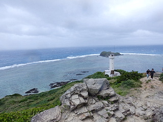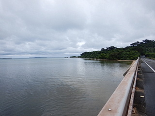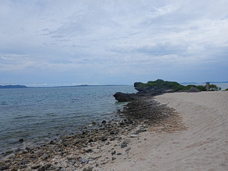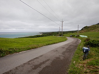 しばらく走ると国道390号線は終わりを迎えた。先に端っこを制して来てしまったが、宮古島と石垣島で国道390号線を完走したので沖縄本島からここまで縦断してきたと言って良いだろう。妙な満足感を持って伊原間(いばるま)から北の方へ向かう。途中で鍾乳洞があったが一旦スルーしていく。ここからもアップダウンは激しく上る度に遠景を楽しめる。牧場と海を見ながら走るのんびりした景色を楽しみながら明石まで行く。ここで売店に立ち寄って食材を探す。旬のモズクが美味しそうなので買い込む。近所の共同売店に行き、酢と鰹節も手に入れる。これで土佐酢を作れるのでモズク酢を楽しめる状態となった。また旅の間に瓶入りの調味料が増えていくあるあるが発生している。食堂も近くにあるので、平久保崎を見た帰りに昼飯で来ようと決めた。 明石から石垣島の東側の道を行けるように地図上では見えるが入る道は見つからない。諦めて西側の道から行くことにする。最北端から回ってくるときに東側を通る道の入り口が分かれば良いかと思い割り切る。牧草地と道と海だけの素朴な道が続いていく。右側には山が見えている。ここだけで言うと沖縄らしさはあまり感じない海岸線である。平久保崎の方へ入る道を曲がり進んでいくと、曇り空にも関わらず美しいリーフが見えてきた。 |