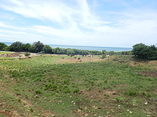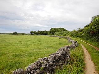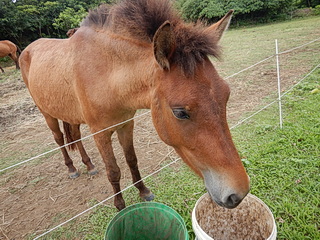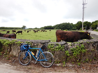牧草地とリーフを見ながらのんびりと走り、駐車場に自転車置いて岬へと歩いて行く。岬のあたりだけは風が強く岩の上に立つとバランスを崩しそうだが、てっぺんからの眺めを楽しんでいく。これで石垣島の最北端を極めたので、東側に回る道を探しつつ進んでいく。与那国馬の牧場に突き当たったところで、その先がダートになってて入っていけそうもないため引き返す。そうと決めたら馬に癒やされるべく休憩する。