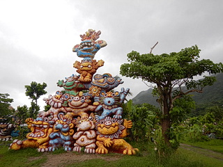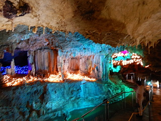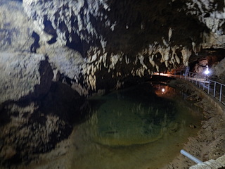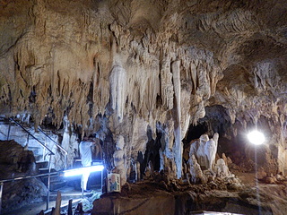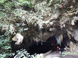 雨がやんでいる隙に石垣島鍾乳洞へ向かう。今日走ろうと思っているバンナ岳へ行く途中だし鍾乳洞好きとしては外せない場所である。上り坂の途中にある鍾乳洞へ曲がる。駐車場の隅に自転車を置いて鍾乳洞へと入っていく。中国的な入口を入っていく。日本一成長が早いと言われている。沖縄自体が珊瑚礁の跡が石灰岩になって出来た地形なので石灰質も豊富で鍾乳洞は多い。広くて造形が複雑な鍾乳洞を満喫する。他であまり見たこと無いがライトアップやイルミネーションが積極的に行われていて見せる鍾乳洞になっているのが印象的だ。ちょっとどうかと思うが、それも鍾乳洞の表現の一つとして受け入れる。 |