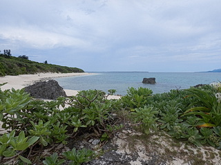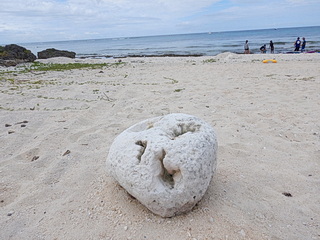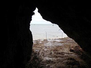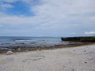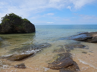 南に進みつつ伊原間サビチ洞へと立ち寄る。結構な広さの洞窟の入り口から入っていく。そんなに冒険感はないが先が海につながっているというのでワクワクしながら歩いて行く。途中で泡盛の熟成をしている瓶が置いてあったり他の鍾乳洞とは違う気楽な雰囲気を味わいながら歩く。しばらく歩くと海が見えてくる。琉球石灰岩のゴツゴツした岩ときれいな砂浜のプライベートビーチが他では見ない雰囲気を出している。結構長い距離を歩ける海岸なので海を満喫し、再び鍾乳洞を歩いて戻る。