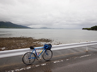 朝から霧雨が降っている。予報通りに天気は悪い。蒸し暑くて晴れた宮古島と異なり寒いぐらいの朝を迎えた。朝飯を食べるところはないので、昨日の残りの八重山そばを茹でて朝食にする。キャンプ場に見慣れない野鳥がいるのが見える。真っ赤なリュウキュウアカショウビンも見かける。キャンプ場の豊かすぎる自然を満喫する。湿った路面と曇った空の下を北上していく。今日はキャンプ場に荷物を置いたので空荷で身軽に走って行く。今回の離島旅はフル装備での走行距離の方が圧倒的に少ない状態だが、これが拠点型の島旅と言えるだろう。