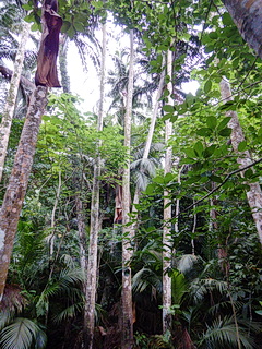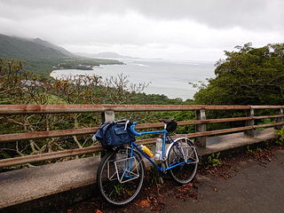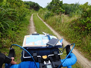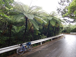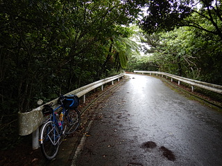 朝飯に力をもらって走り出す。まずは野底岳(のそこだけ)へと上る坂道へ入っていく。足首の痛みがあるのでギアは無理せず軽めで行きたい。足首はペダルにパワーを伝達する最後の箇所なので力が集中すると心配なところだ。登りに入ろうと思ったがマイナーすぎて標識も何もない道で峠道を探しながら進んでいく。今はGoogle mapで現在地を確認しながら進めるので便利だ。パイナップル畑の中を貫く細い道を上り始める。徐々に傾斜が増してくる中で落ちた葉っぱが崩れて濡れていてその下には苔が生えているので路面が滑って縦グリップが取れない。たまに後輪がズルッと滑りながら上っていく。下りの方がやや不安ではある。余力はあるがギアを低めにしてゆっくり上る作戦で行く。今日は慌てても良いことはなさそうだ。