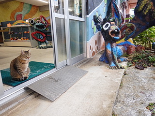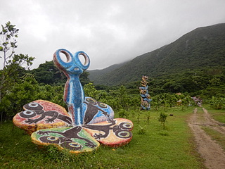 坂道を下り終えてバンナ岳を回って石垣市街に戻ろうとしたら土砂降りの雨が降ってきた。面倒だがレインウェアを着込んで行く。すぐにやんだが着たまま風に当てて乾かす。びしょ濡れのまま仕舞うとカビでも生えそうな湿度を感じる。残りの時間が少なくなってきて、具志堅用高記念館と昼飯が残りの行動予定となった。19時過ぎの飛行機なので17時には空港に着くとして、15時半には市街地を出たい。