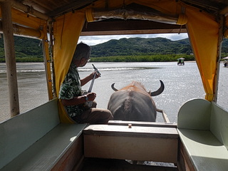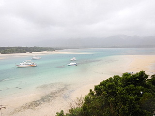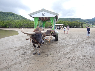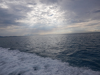 盛りだくさんな旅も残り2日になった。朝は早く目覚めてチェックアウトする。連泊に出来なかったのが痛恨だが仕方ない。今日も離島ターミナルへ行き、黒島行きのフェリーに乗り込む。西表島に行くフェリーより間口が狭いので荷物を全部送り出しておいたのが正解だった。荷物がなく幅が狭くなった自転車を乗せて船は出発する。西表島を横目に見ながら全体が見えるほど小さい黒島へと近づいていく。天気が今日から崩れ始めてくるので、すっきりとは晴れてないものの、雲の間から光の筋が降りて幻想的な景色になっている。