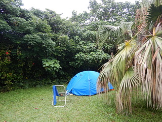 珍しく明るい時間からキャンプ入りしたので夕食の片付けが終わった時点で21時。空は曇っているのに曇り空の向こうに星が透けて見える。それだけ周りが暗くて星の明かりが強いのだろうか。晴れていたら星空はどれぐらい凄いのか想像するだけでも楽しみがある。リュウキュウコノハズクの鳴き声を聞きながら眠りにつく。 |