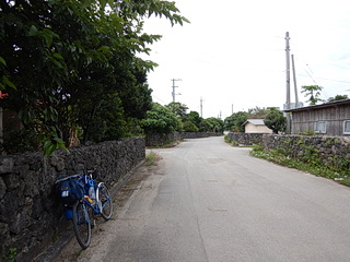 海を一周する道はここで終わって島の中心へと入っていく。ちょうどここで昼飯にしようと、島では数少ない食事処に行ってみると痛恨の休みだ。このほかは港の方に1軒とカフェが1軒あるようだ。空腹は一旦忘れて石灰岩の石垣が並ぶ沖縄らしい素朴な町並みを楽しむ。何か食べるものが無いか共同売店に立ち寄る。これもおそらく島で唯一で、当然だがスーパーやコンビニなどというものは無く1軒の共同売店のみだ。そんなに充実したお弁当が売られてたりはしないが、八重山そばが売られていた。キャンプ道具は発送したから火は使えず麺を茹でたり出汁を作ったりはできない。ソーキや三枚肉といった沖縄そばらしい具は売られていない。だが、缶詰のレトルトパックが売られていることに気づく。八重山そばの袋に からそば の説明が書いてある。確かにTVで見たことがあった。麺の袋に鯖や鰯やサンマなどの缶詰を入れて袋の外から揉んで混ぜるだけで食べれる。これだ!と閃いたら、せめて野菜は食べたいのでトマトとキュウリも買っていく。 |