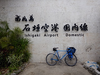 雨はやんでドライの路面で快調に空港まで走っていく。既に3回目の走りになるので勝手も知り尽くしつつある。白保を通過して、空港が近づいてきた。とうとう、旅も終わりを迎えようとしている。これから数年の活動休止も考えられる状況のため、感慨深くゴールを迎える。だが、今回の旅で思い残すことが無いほど走り尽くしたし楽しみ尽くしたので、未練は何もなくゴールである石垣空港にたどり着いた。走り倒した宮古・八重山の旅は700kmを越えた。離島の旅でこの走行距離は快挙と言えるし、それだけ細かく走り尽くしたということだろう。宮古島も石垣島も西表島も黒島も周辺離島も含め隅々まで走ったという印象だ。3月と通算すると1000kmを越えるので春の旅としては圧倒的な長さを走ったことになる。 達成感をかみしめながら自転車をばらして輪行袋に収めていく。作業が終わったら着替えを持ってトイレに行く。汗臭い服を全て着替えていく。シャワーを浴びれると理想だが空港にはそれは無い。荷物を預けたらお土産を買う。閉店間際で慌ただしい。そうこうしてる間に夕飯を食いそびれた。仕方なくブルーシールアイスだけで空腹をしのぐ。遅い時間の飛行機で帰ると、ギリギリまで楽しめるかと思うが、意外と土産や夕飯が慌ただしいか買い逃すことがある。